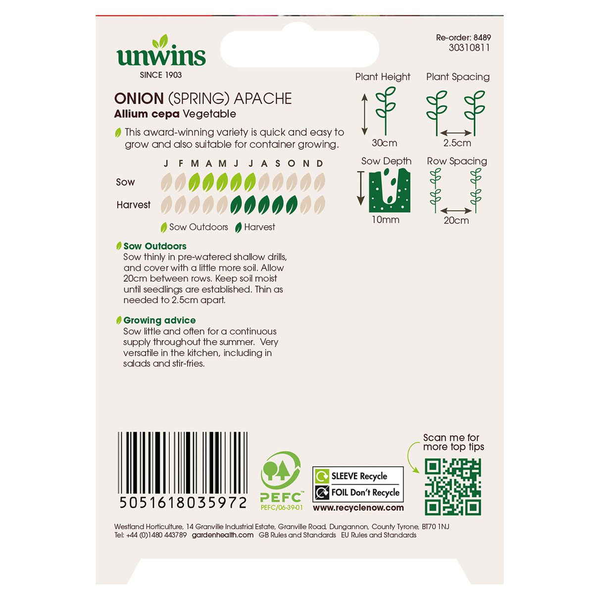 When to sow and harvest Unwins Spring Onion Apache Seeds