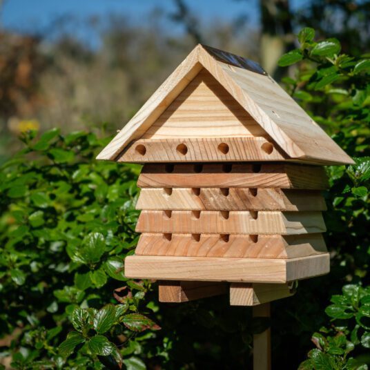 The hole sizes of this habitat are precisely specified to attract non-swarming bees like the red mason bee, leafcutter bee and other solitary bees. These friendly bees are industrious and safe around children and pets. The bees are naturally attracted to holes in wood and the Wildlife World solitary beehive provides a habitat that has become harder to find in modern gardens. Fascinating and great for education, the beehive trays can be carefully separated to view the formation of small cells where the eggs are laid, or indeed where predators have been active.