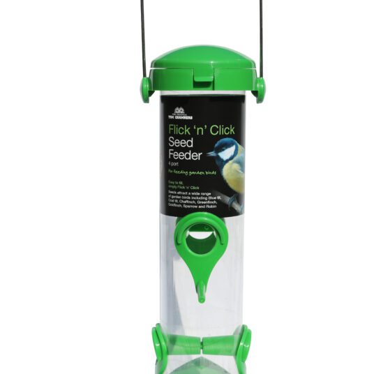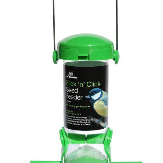 This Tom Chambers bird feeder holds all types of seeds. Its ‘flick & click’ lid makes it easy to fill regularly and the base removes easily for cleaning.