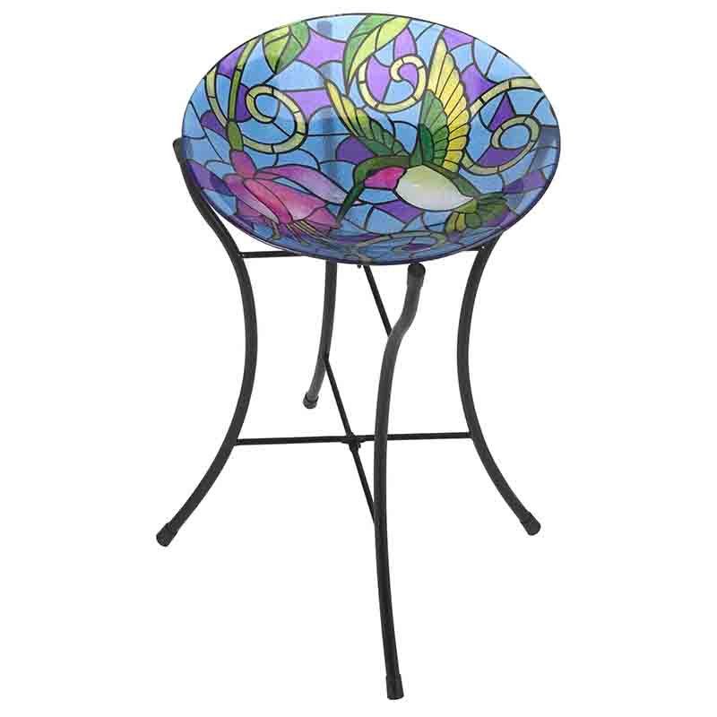 Add a vibrant focal point to your garden with the Hummingbird Design Glass Bird Bath. Featuring a beautifully hand painted glass bowl with an eye catching hummingbird design, this 35cm bird bath brings colour and charm to lawns, patios and borders. Supplied with a sturdy metal stand, it offers a safe and inviting spot for birds to drink and bathe throughout the seasons.