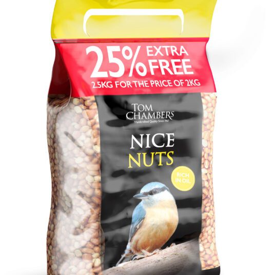 Nice Nuts from Tom Chambers are rich in oil, fats and protein and the perfect all year round, high energy food for garden birds. Nice Nuts are loved by Tits, Finches, Nuthatches and Woodpeckers.