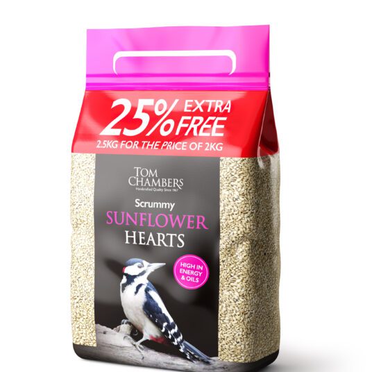 By leaving these Tom Chambers scrummy sunflower hearts out for wild birds you will help to attract a symphony of wildlife and songs to your outdoor space. They can be used in feeders, bird tables and on the ground.